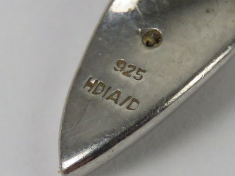 A silver suite of jewellery comprising stud earrings and matching pendant.
