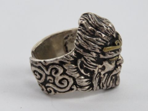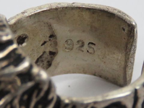 A large gothic style warrior head ring, stamped 925, slight adjustable size S.