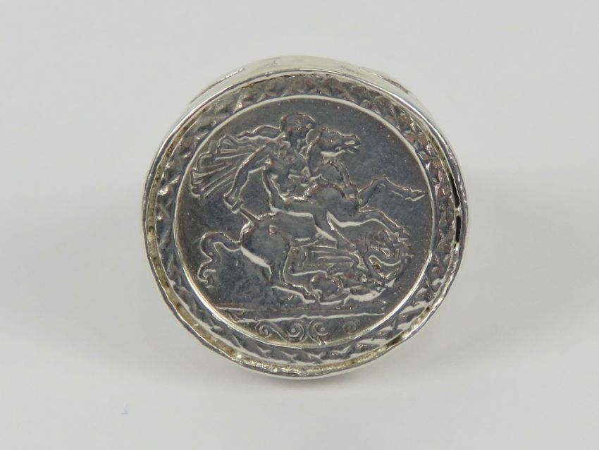 A HM silver 'coin' ring, George and Dragon design, hallmarked Birmingham, size Q.
