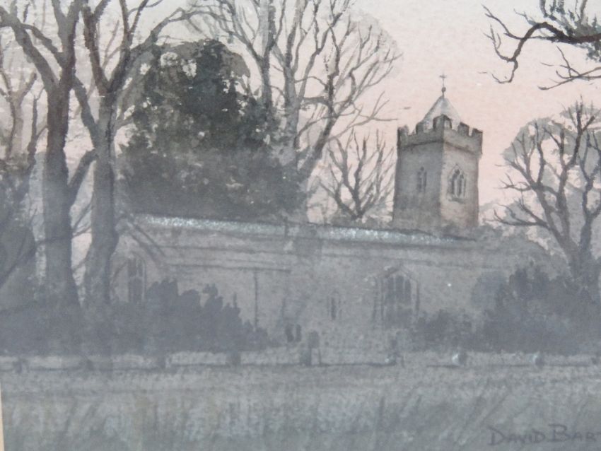 David Barthorpe, watercolour study entitled 'Evening (at) Upton Church, Northampton' (St Michaels), framed and mounted, sight size 18 x 14cm.