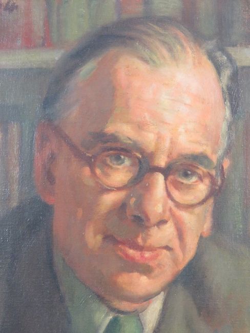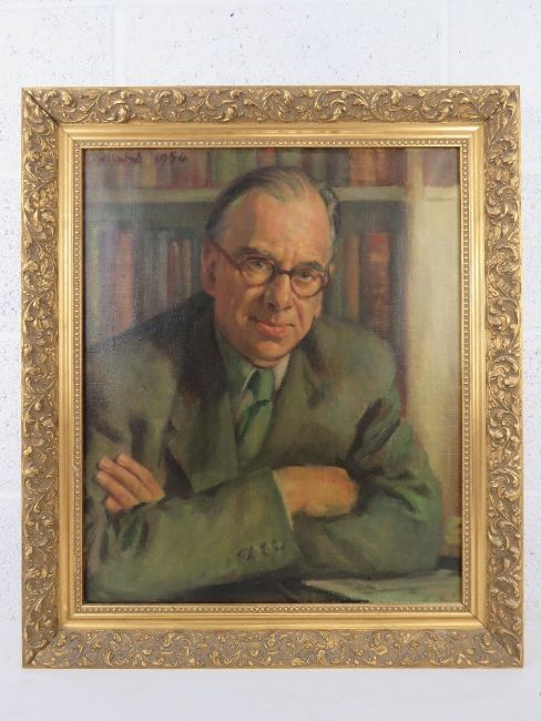 GHB (George) Holland (1901-1987), oil on canvas, half length portrait of the Composer William Alwyn CBE, (born William Alwyn Smith; 7 November 1905 - 11 September 1985), signed upper left and dated 1954, framed, sight size 50 x 60cm.