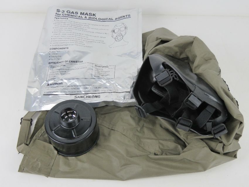 A Korean SE3 Hooded Gas mask in Bag.