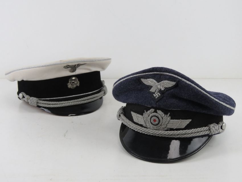 Two reproduction WWII German Officers Caps.