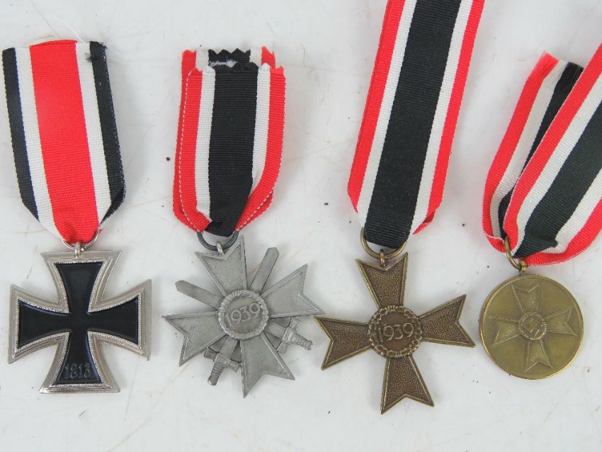 A quantity of assorted reproduction militaria; 2x German Armbands. 4x German Medals.