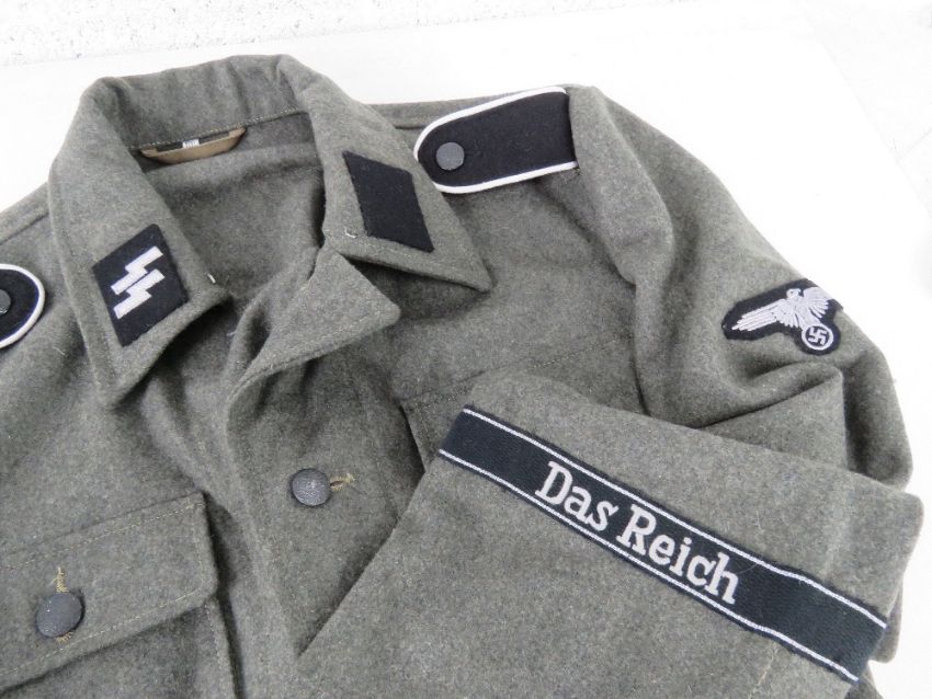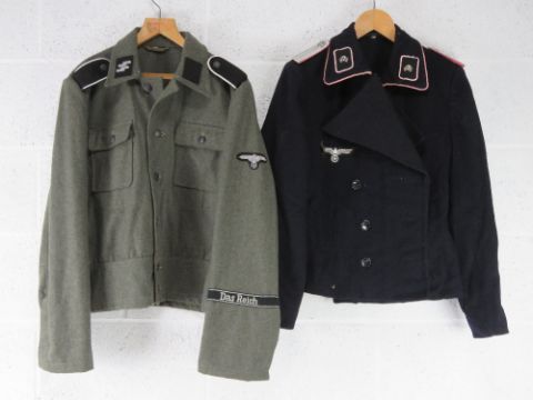 A replica German SS Panzer tunic. Size 41 together with a replica German Combat Tunic Size XXXL.