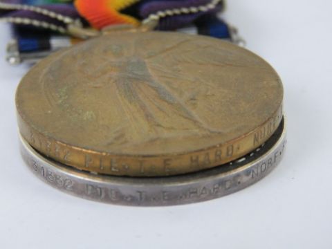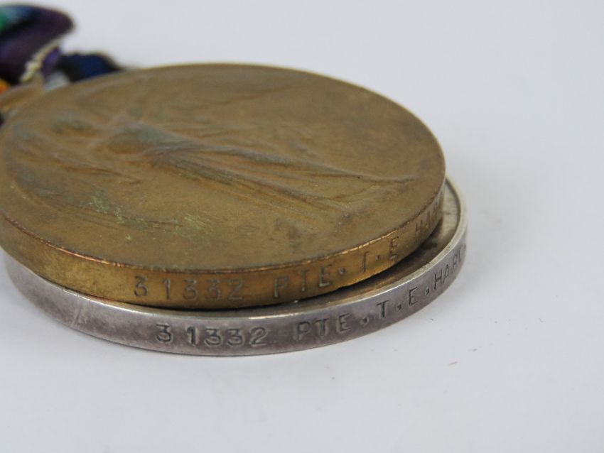 A WWI Victory and War Medal pair, engraved for Pte. T. E. Hard 31332.