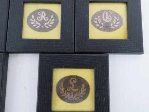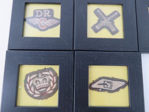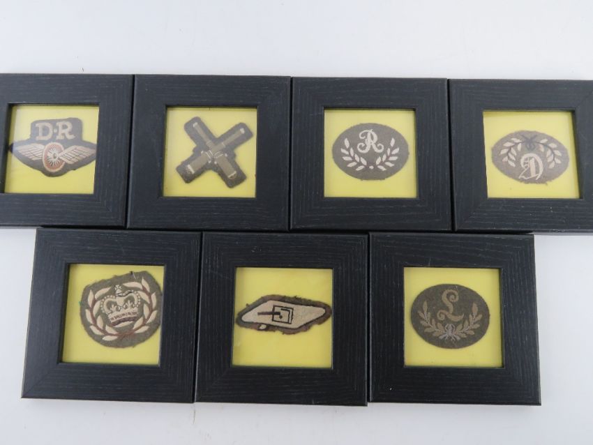 A quantity of WWI British framed insignia, seven items.