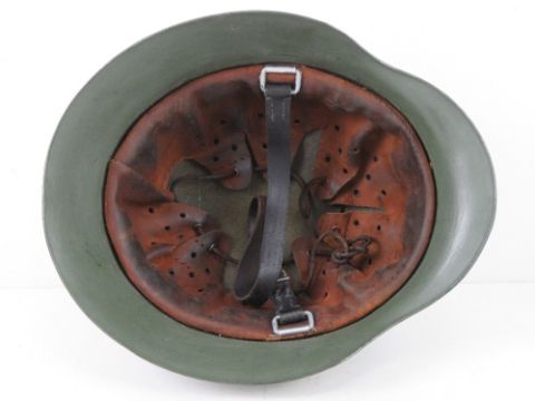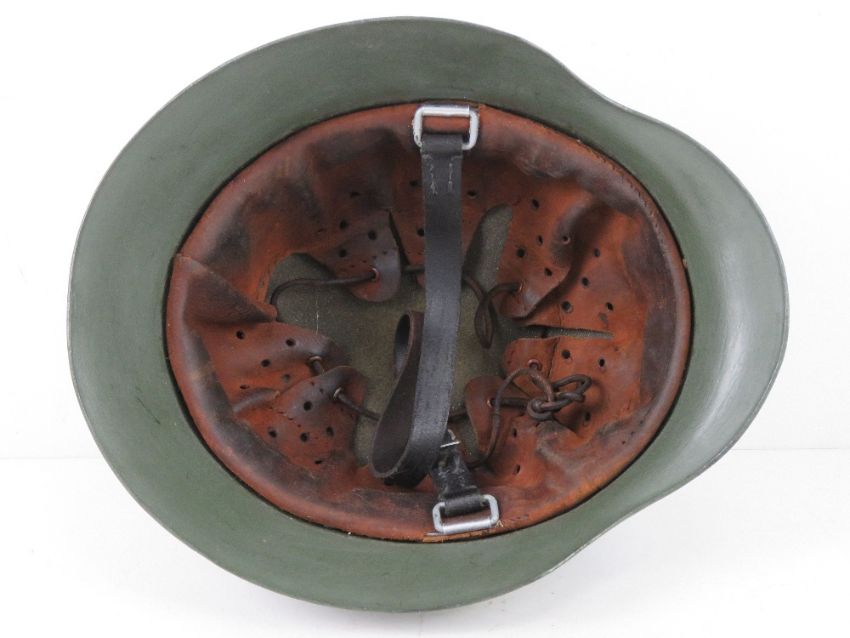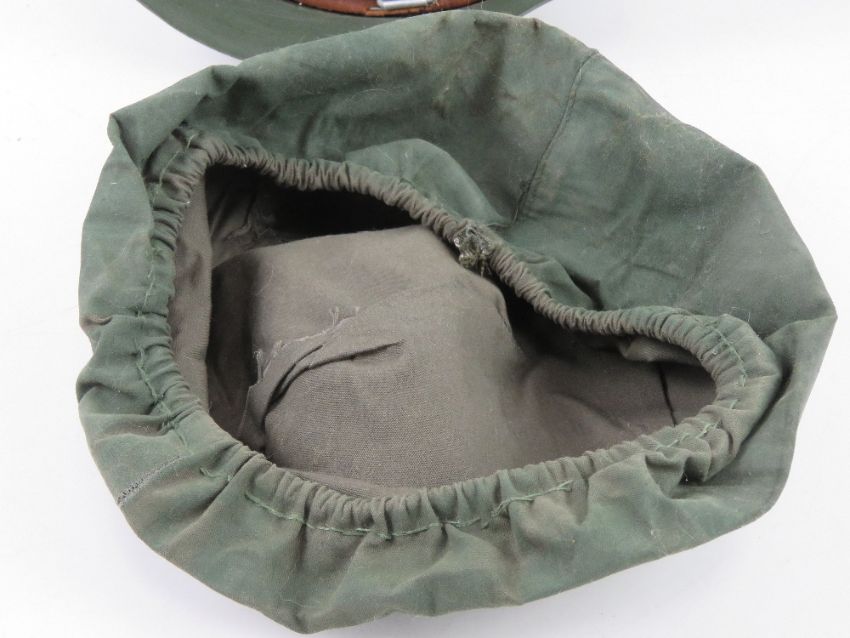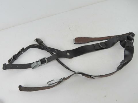 A pair of German 'Y' straps together with a reproduction German Army helmet and helmet cover.
