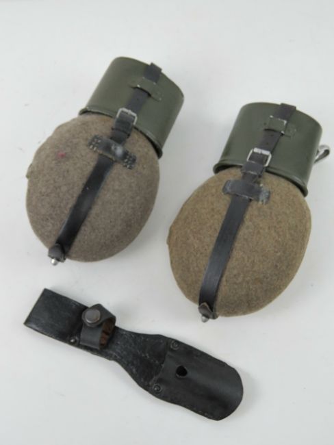 Two German water bottles together with a German K98 bayonet frog.