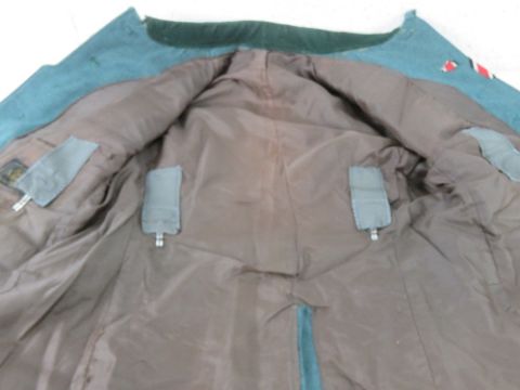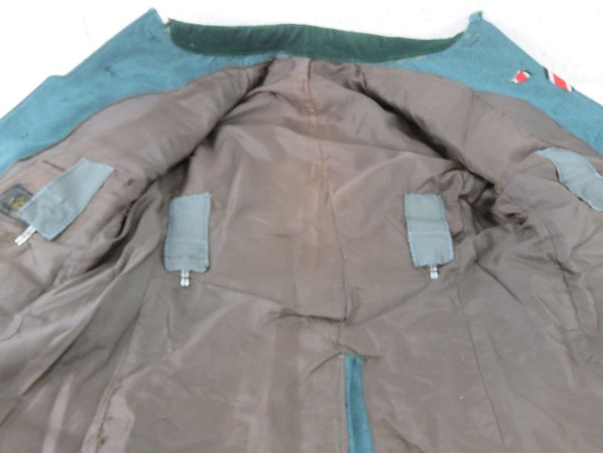 A reproduction German Combat Jacket with Insignia, and breeches.