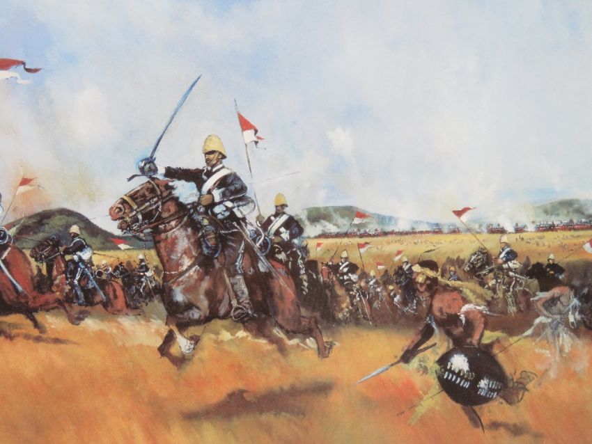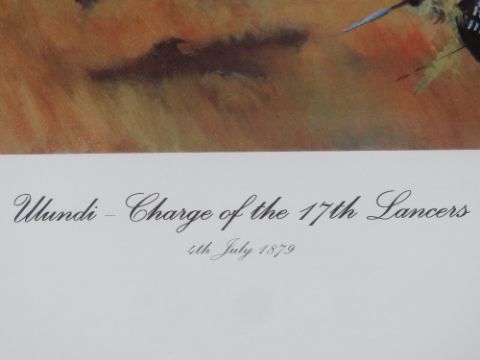 Jason Askew; Signed print, 'Charge of the 17th Lancers', framed and measuring 67.5 x 49.5cm.