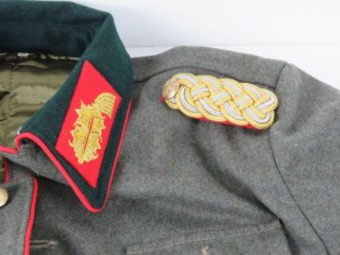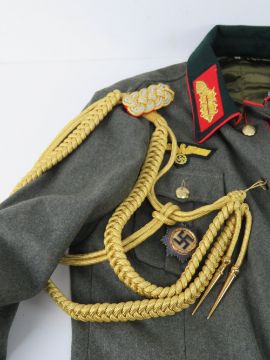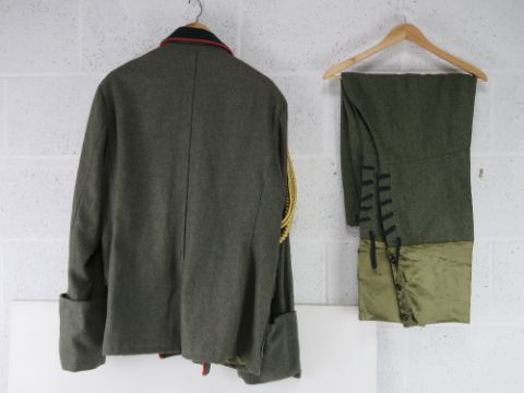 A reproduction WWII German General's tunic (XXXL) with breeches (XL).