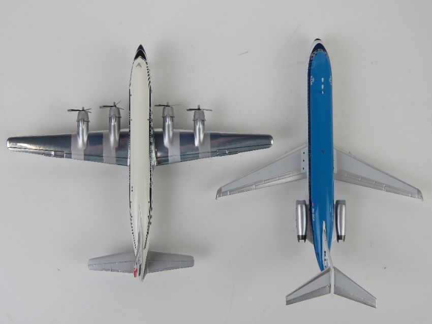 KLM Douglas DC-6B 1/200 scale model aircraft by Herpa, in box. Together with a KLM McDonnell Douglas DC-9-39 limited edition 1/200 scale model aircraft by InFlight, in box. Two items.