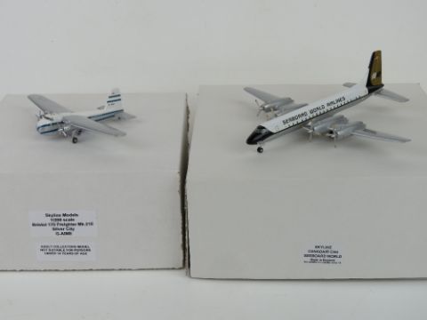 Two scale model aircraft by Skyline Models being 1/200 scale Bristol 170 Freighter Mk21E Silver City registration G-AIME and a Canadair C144 Seebord World. Each in box.