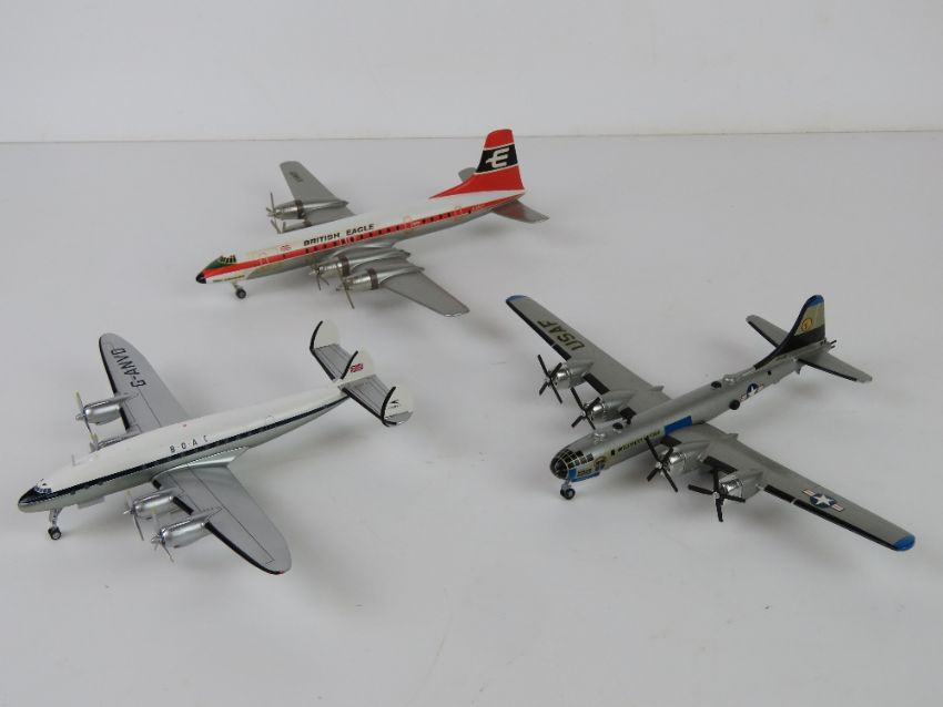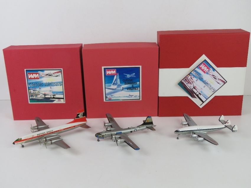 Three model aircraft by WM, each in box, being 'Classic Airliners' Bristol Britannia (British Eagle), 'Classic Airliners' L-749 BOAC and 'Classic Bombers and Utilities' Boeing B-29 Superfortress (Dragon Lady).