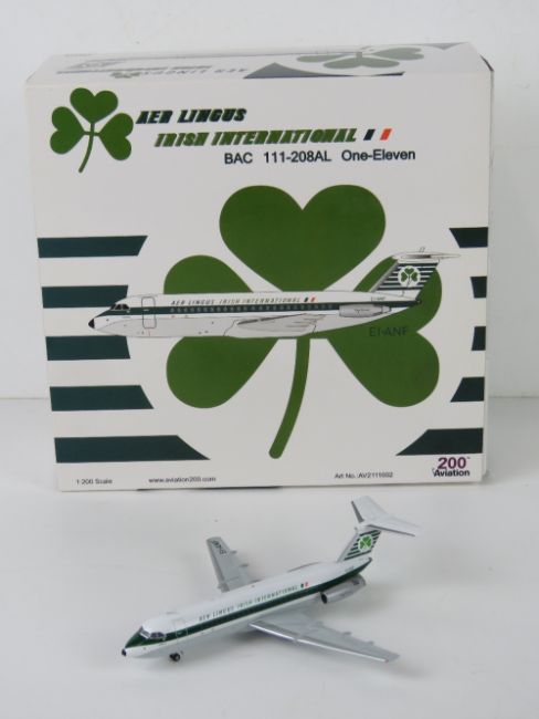 Aer Lingus Irish International BAC 111-208AL One-Eleven registration EI-ANF, 1;200 scale model aircraft by Aviation 200, in box.