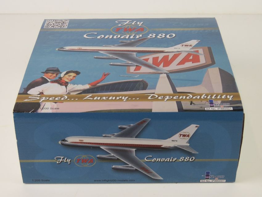 A TWA Convair 880 1/200 scale model aircraft, limited edition made by InFlight, in box.