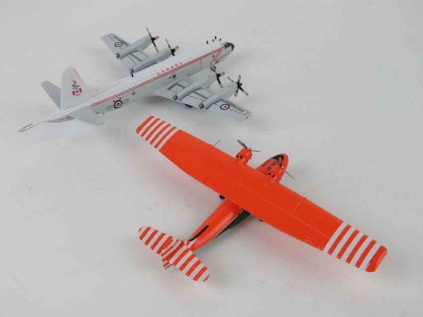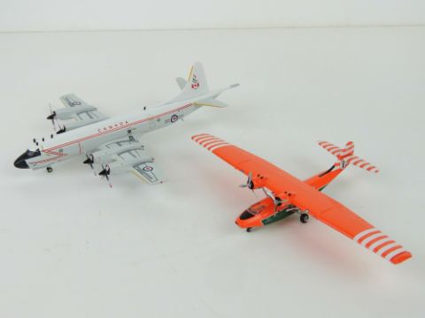Canadian Armed Forces Lockheed CP-140 Aurora 1/200 scale model aircraft made by InFlight, in box, together with a Canadian Forest Service Vickers Catalina PBY-5A 1/200 scale model aircraft by Herpa, also in box. Two items.