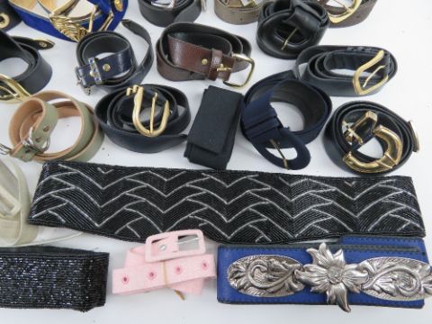 A large quantity of assorted vintage and contemporary ladies belts.