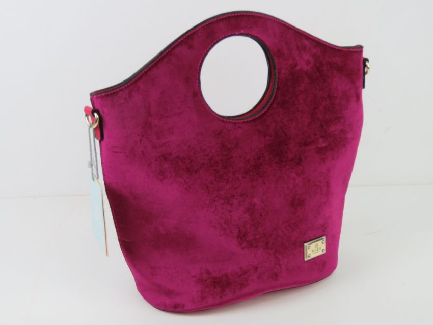A fushia velvet handbag by Bessie London, having original tags upon, no shoulder strap.