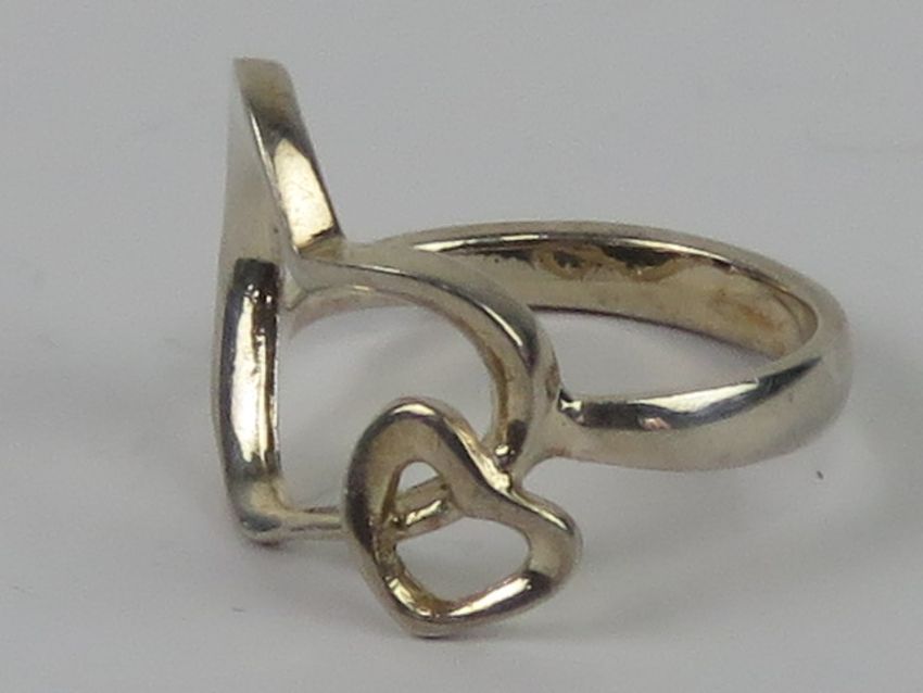 A silver ring in the form of two hearts, stamped 925, size M.