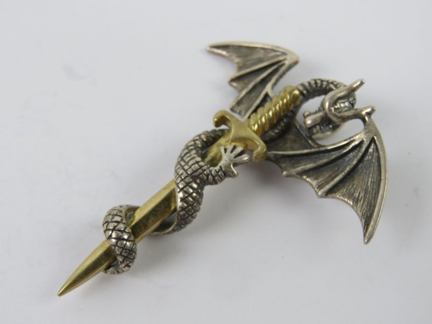 A silver dragon and sword pendant, stamped 925, 5.5cm in length, 16.3g.