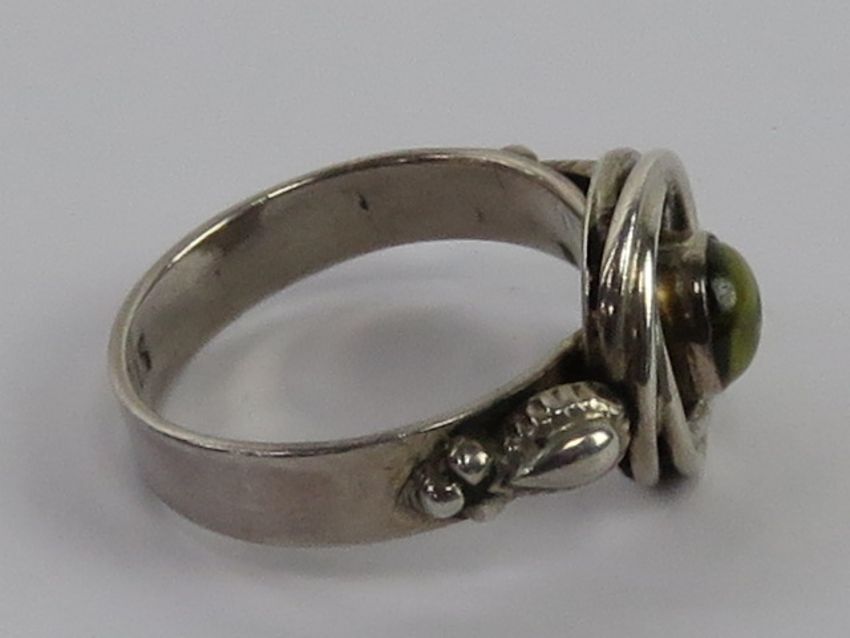 A silver and amethyst ring having central cabachon with wreath design, stamped 925, size R.