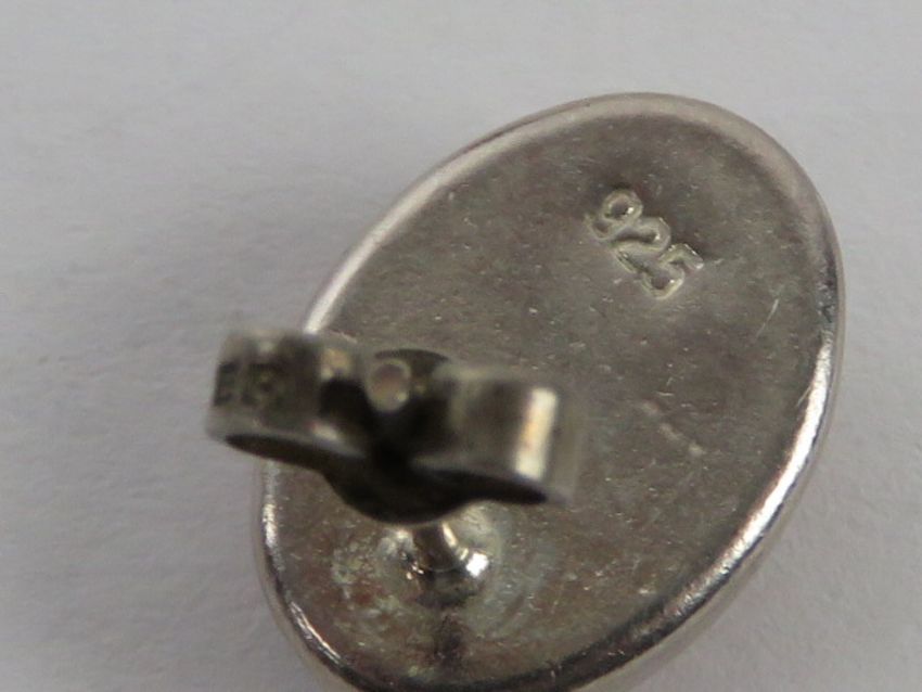 A pair of silver and Baltic amber stud earrings, stamped 925 with butterfly backs.