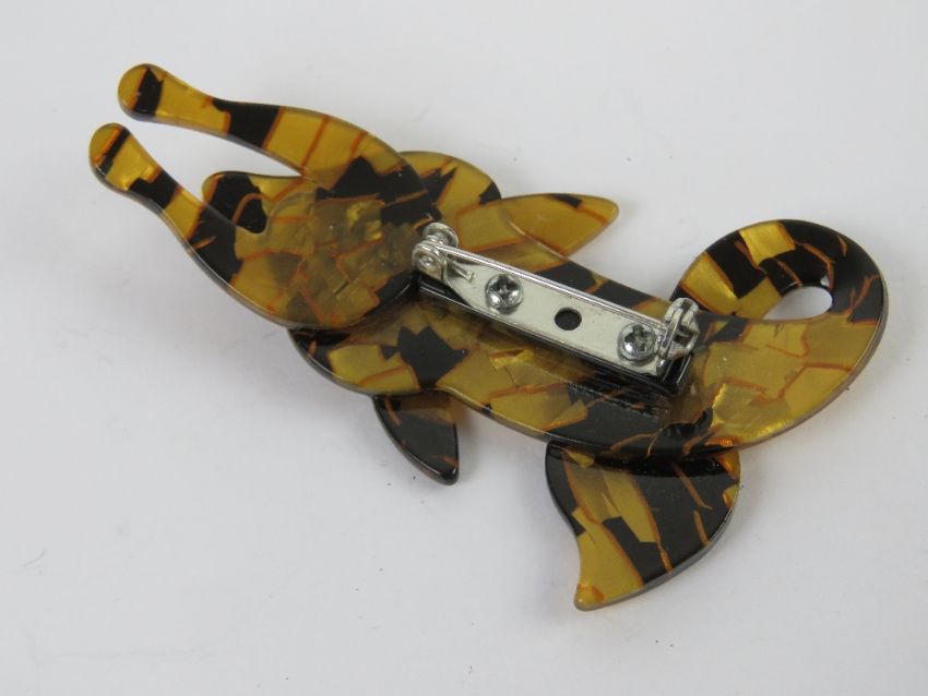 An overlaid plastic brooch in the style of Lea Stein, brown and black fox measuring 7.5cm in length.