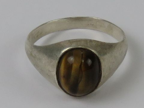 A silver tigers eye cabachon ring, stamped 925, size S.