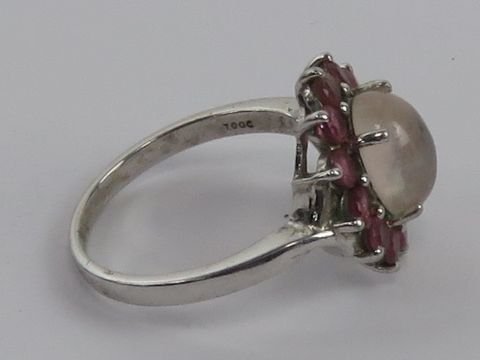 A contemporary silver pink floral cluster ring, stamped 925, size R-S.