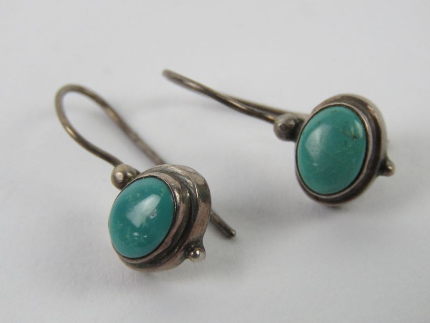 A pair of turquoise earrings, no apparent hallmarks, 2.4cm drop.