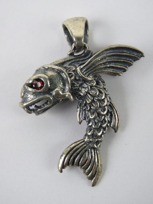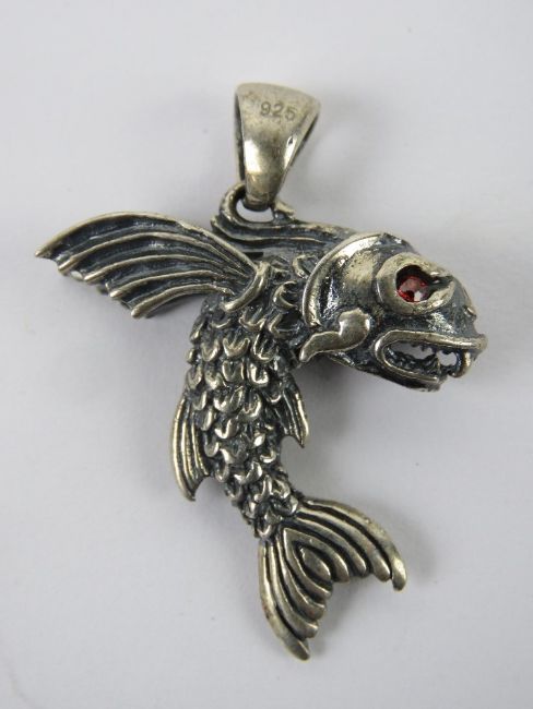 A flying fish pendant having red stone eyes, stamped 925, 4.77cm in length, 8.3g.