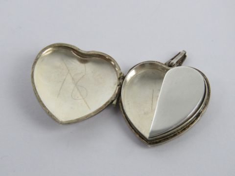 A silver heart shaped locket having unusual trinket / momory box within, stamped silver, approx 2.3cm wide.
