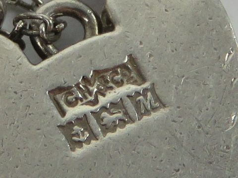 A HM silver curb link chain charm bracelet having heart padlock clasp, hallmarked to the chain and clasp, 14.9g
