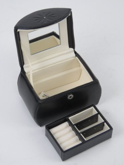 A leatherette jewellery box in the form of a clutch bag.