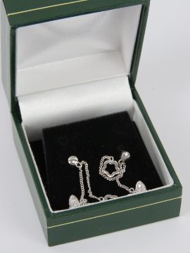 A pair of silver butterfly and floral drop earrings, stamped 925 with 925 silver butterfly backs, in presentation box.