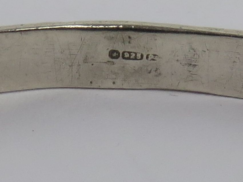 A silver bangle having Maltese cross pattern throughout and Maltese hallmark upon, 6.9cm internal dia.