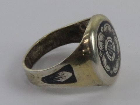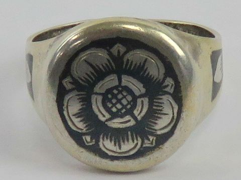 A silver niello floral signet ring, Russian silver hallmarks, size O-P.