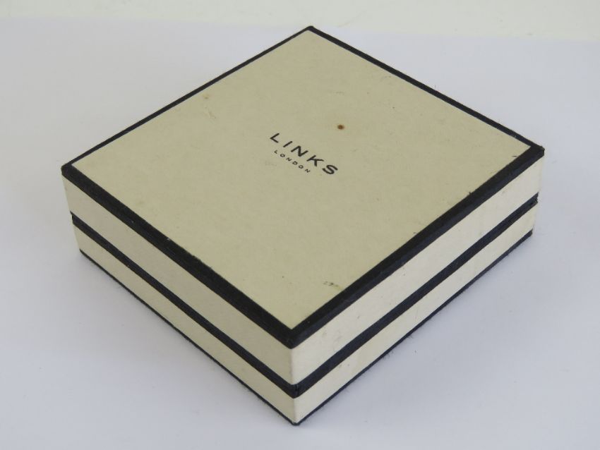 Links of London; two silver charms having Links hallmark upon in the form of an '18' and a champagne bottle. In presentation box.