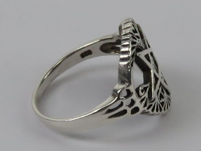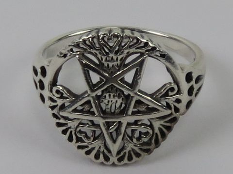A silver Wiccan pentagram and tree of life design ring, stamped 925, size T.