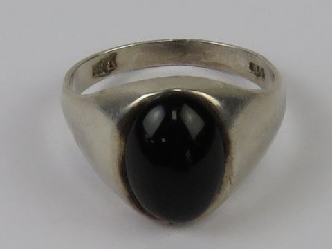 A mens HM silver and onyx cabachon ring, hallmarked London, size Y.