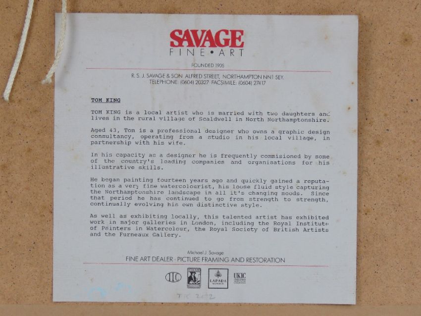 Tom King, original watercolour 'Penne' from the 'Spring in Chaos' collection 1992, signed lower left, sight size 48 x 27.5cm, framed and mounted.