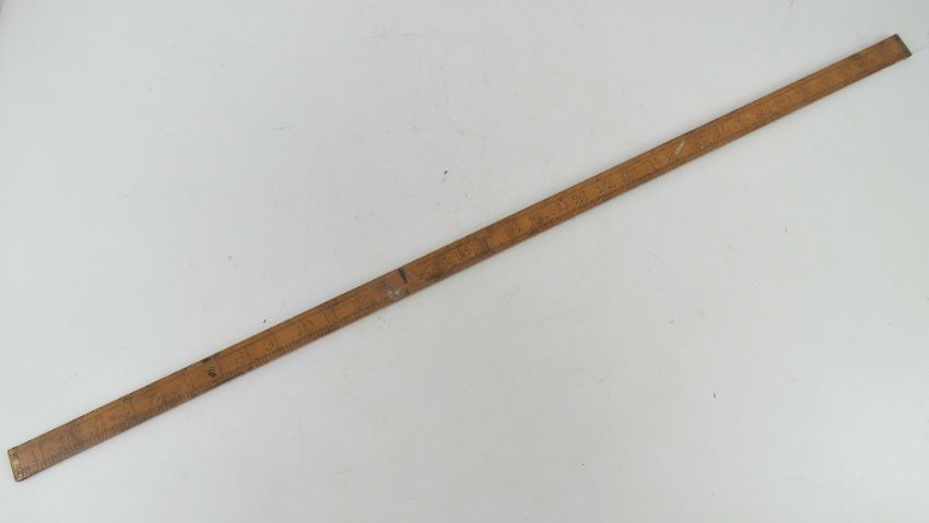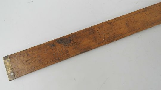 A boxwood yard stick having brass ends made by E Preston & Sons Birmingham.