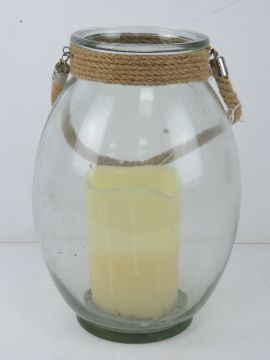 A contemporary glazed 'hurricane' lantern with battery powered candle within. 32cm high.