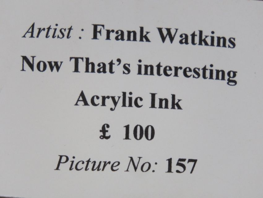 Frank Watkins; acrylic ink 'Now That's Interesting', having gallery label upon, framed 32 x 37cm.