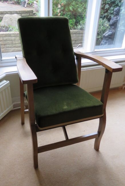 An unusual set of four partially metamorphic chairs, having swivel backs (upright/slanted) and folding arms and legs. C1960s.