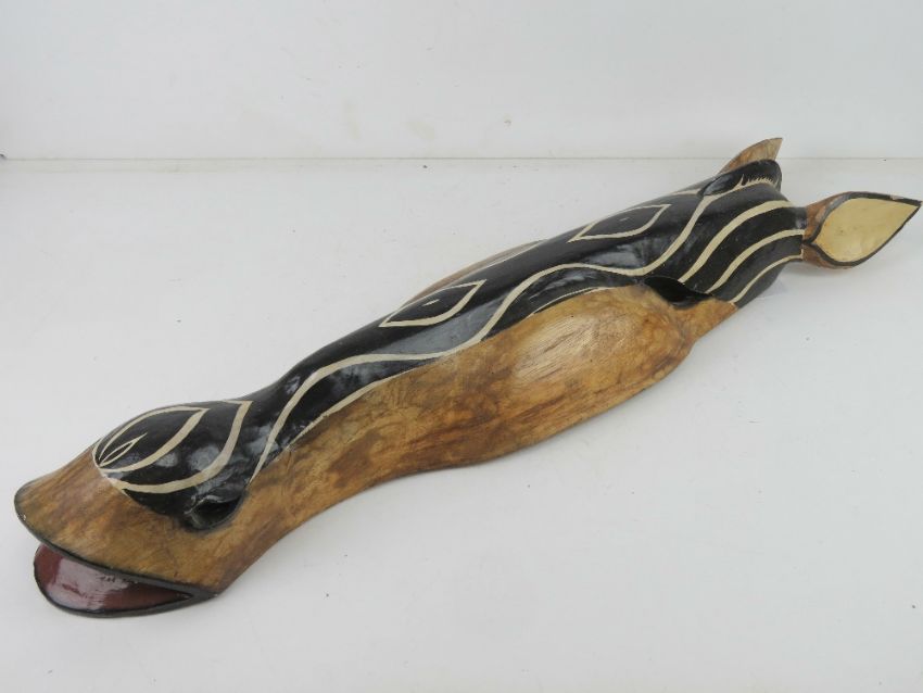 An African wall carving being the head of a Zebra and measuring 80cm in length.