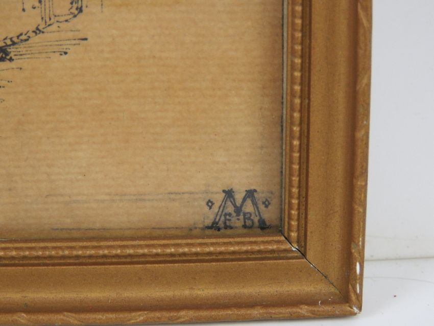 Sir Edward Brantwood Maufe (1882-1974) RA , FRIBA Pen ink on paper, Pre Raphalite / Edwardian School Portrait of a woman Dated ' December 12 1903 ', monogrammed lower right and ascribed verso plus a newspaper cutting ( Daily Telegraph 9/5/1961) 7 1/4 x 4 1/8ins ( 18.4 x 10.5 cm) This was completed on the day of his 21st birthday Framed in a Kensington Art Framers,131 Kensington Church Street..... labelled frame Bears pencil inscription verso ' By Sir E Maufe RA, FRIBA, arch for Guildford Cathedral ' Sir Edward Maufe is best known for Guildford Cathedral and the Air Forces Memorial . He received a knighthood for services to the Imperial War Graves Commission in 1943