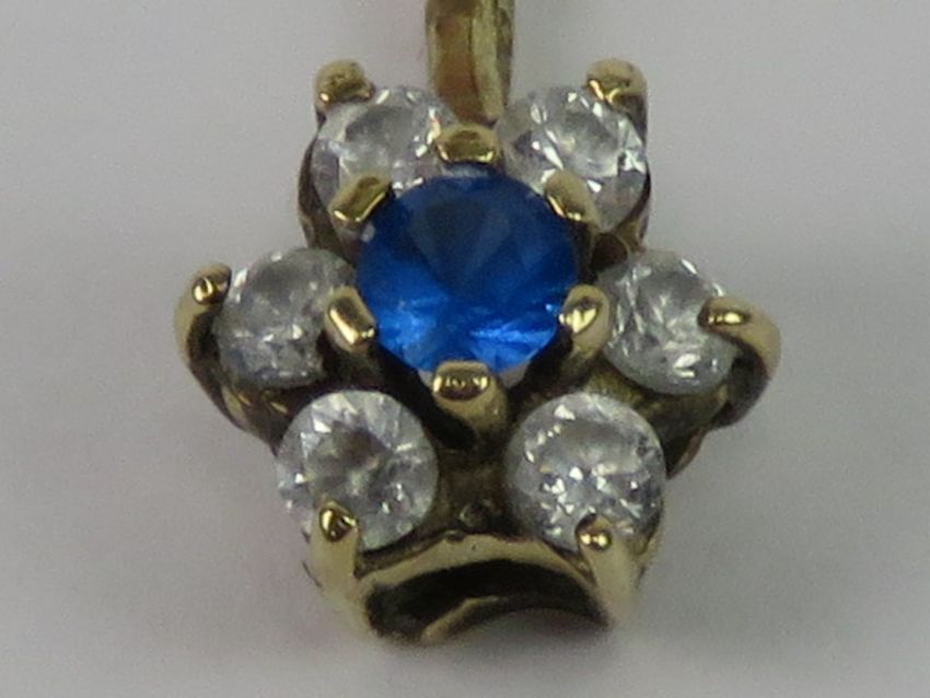 A 9ct gold piercing having blue and white floral cluster, 1.1g.